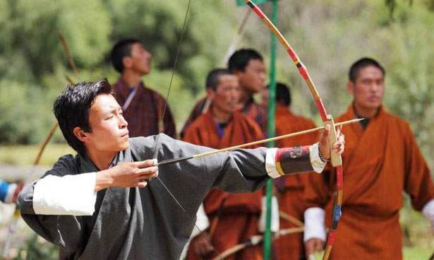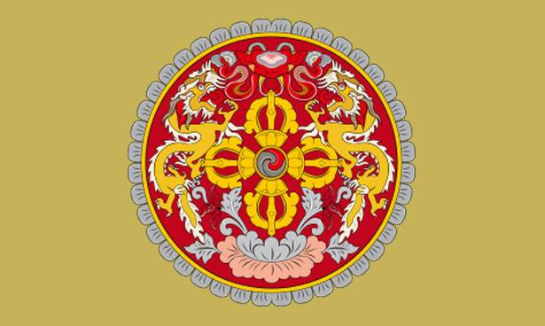 The national flag was created in 1947 by Mayum Choying Wangmo Dorji and modified in 1956 to take its final shape. The Bhutanese flag is divided diagonally and depicts a white dragon across the middle. The upper part of the flag is golden yellow, representing the secular power of the king, while the lower part is orange, symbolising the Buddhist religion. The dragon, whose white colour is associated with purity, represents Bhutan. The jewels held in its claws stand for the wealth and perfection of the country.